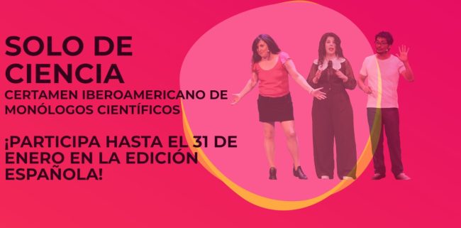 II Certamen Iberoamericano de Monólogos: ¡Únete a la Aventura de la Ciencia! Por segundo año consecutivo la Fundación Española para la Ciencia y la Tecnología (FECYT), anuncia la apertura del plazo para participar en el II Certamen Iberoamericano de Monólogos. Tenéis más información en el siguiente enlace https://www.solodeciencia.es/acerca
