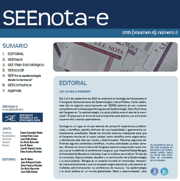 2015, SEENOTAPor Sociedad Española de Epidemiología20/07/2015