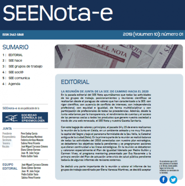 2019, SEENOTAPor Sociedad Española de Epidemiología19/01/2019