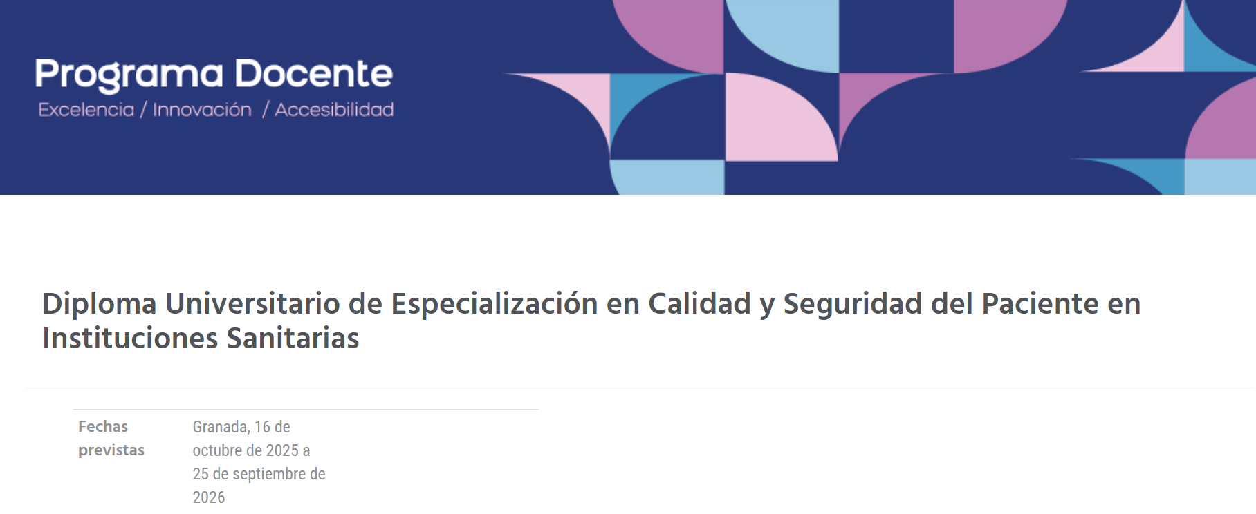 Diploma Universitario de Especialización en Calidad y Seguridad del Paciente en Instituciones Sanitarias (Universidad de Granada – EASP)