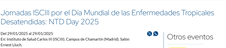 📣 El Instituto de Salud Carlos III (ISCIII), a través del Centro Nacional de Epidemiología (CNE), la Escuela Nacional de Sanidad (ENS) y el Centro Nacional de Medicina Tropical (CNMT), organiza un año más una jornada conmemorativa por el Día Mundial de las Enfermedades Tropicales Desatendidas. 📆 Miércoles 29 de enero. 📍Salón de actos Ernest … Sigue leyendo JORNADA PRESENTACIÓN “Nueva Guía SEMTSI sobre las Enfermedades Tropicales Desatendidas. Novedades, retos y oportunidades”